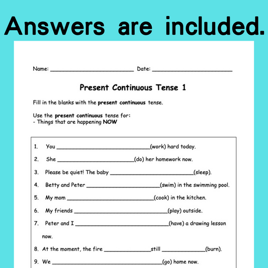 Present Continuous Tense Exercises (Electronic Worksheets)