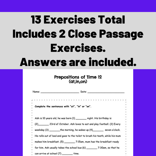Prepositions of Time (At,In,On) Grammar Exercises (Electronic Version)