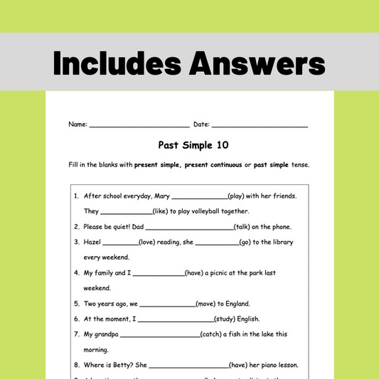 Past Simple Tense Grammar Exercises (Electronic Version)